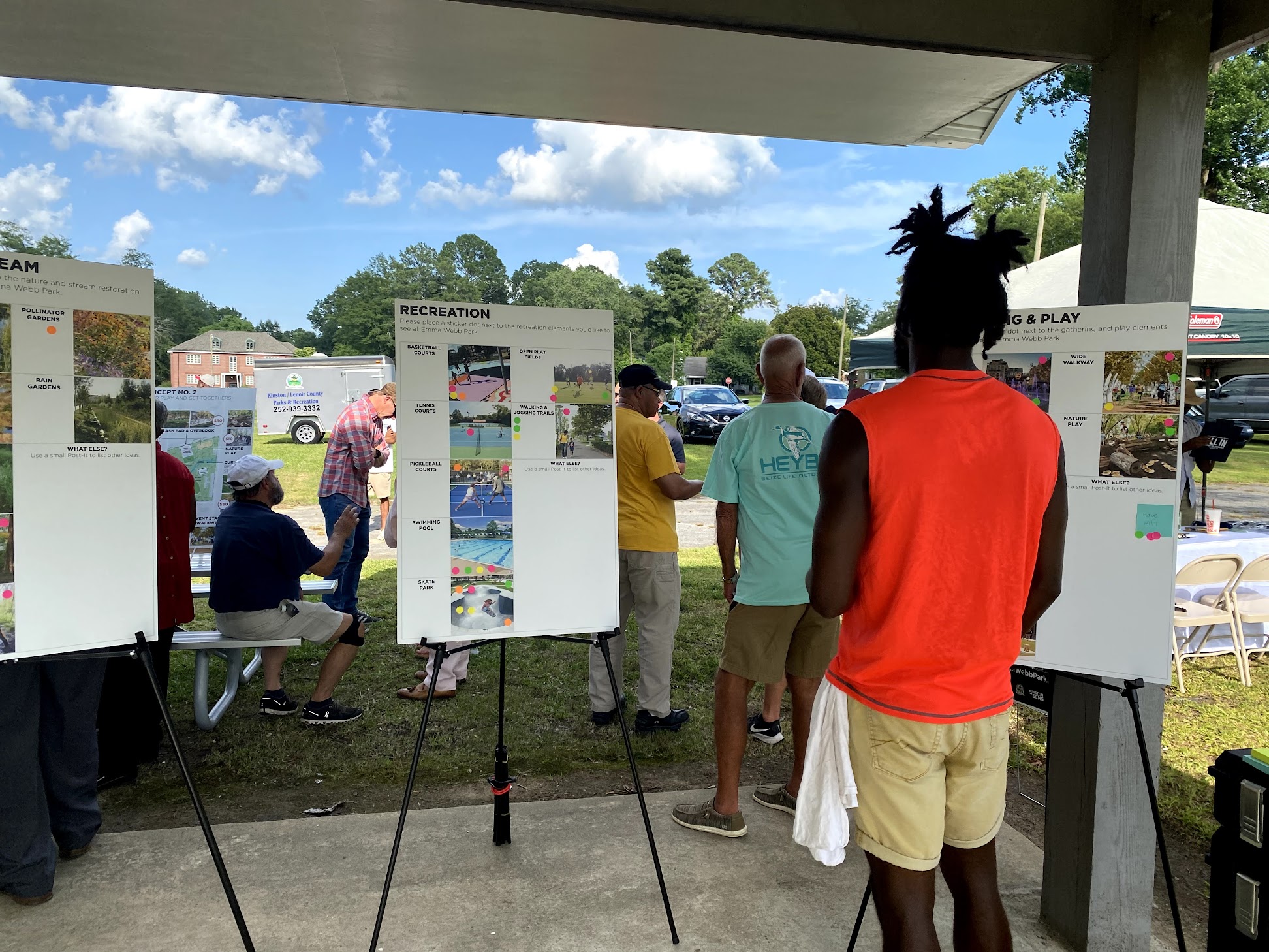 More than 350 community members contributed through surveys, listening sessions, pop-up events, and door-to-door outreach led by youth, prioritizing flood mitigation, accessibility, and recreational needs. Their input guided the Emma Webb Park Master Plan, which includes stream restoration, walking trails, a splash pad, basketball courts, and an ADA-accessible playground.