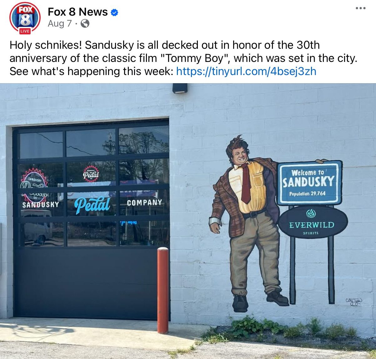 In August, Sandusky, Ohio, celebrated the thirtieth anniversary of the film Tommy Boy starring Chris Farley. Wall murals were a much-photographed feature.